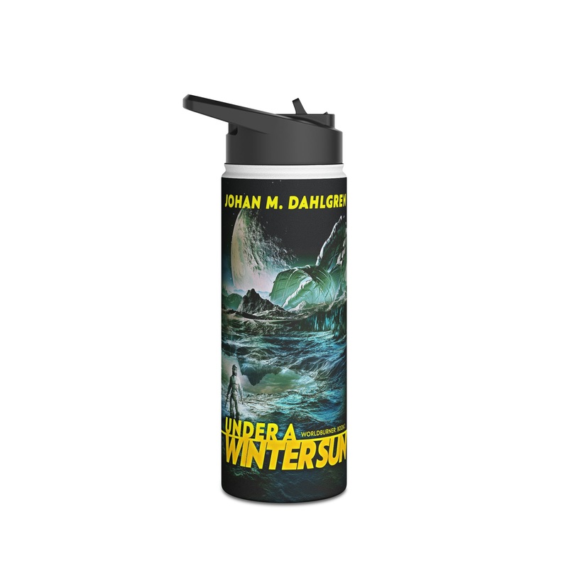 Quench your thirst in style with this 18oz stainless steel water bottle featuring a double-wall stainless steel build that keeps your drinks frosty for 24h and soothingly hot for 12h. This BPA-free, steel water bottle comes with a twist-on lid for easy sipping, making it excellent for daily use at work, at college, in the car, and beyond. The cover art in this water bottle is from Johan M. Dahlgren’s book, Under A Winter Sun.