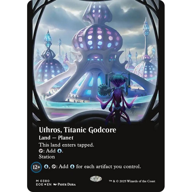 This land enters tapped.T: Add U.Station[12+] U, T: Add U for each artifact you control.Rarity:M#:380Card Type:Land Planet