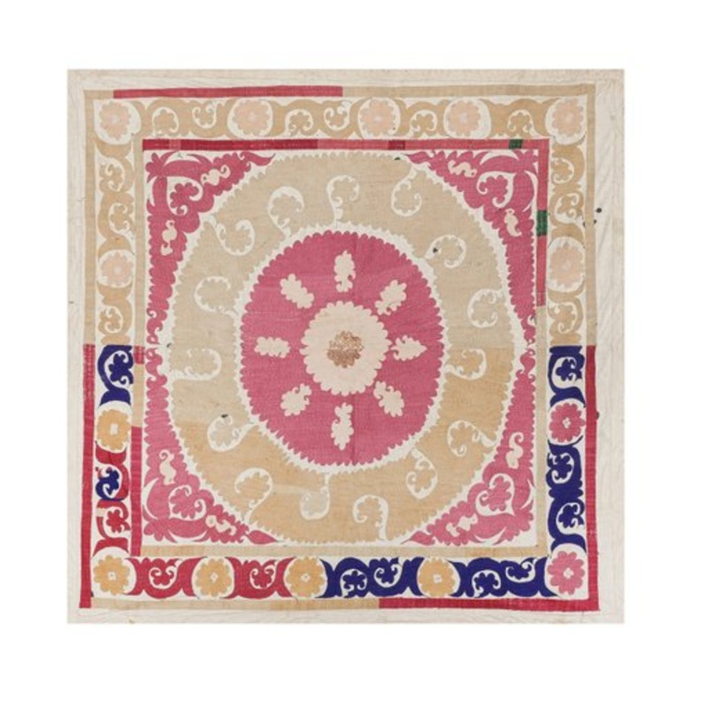 "Vintage Suzani from Samarkand, circa 1900s.There are minor pen marks.Dimension;61'' x 61"" inches / 155 x 155 cm / 5'1'' x 5'1''Material: 100% cotton.Condition: VintageOrigin: UzbekistanSuzani derives from the Anatolian word ""suzan"" for ""needle"" and r