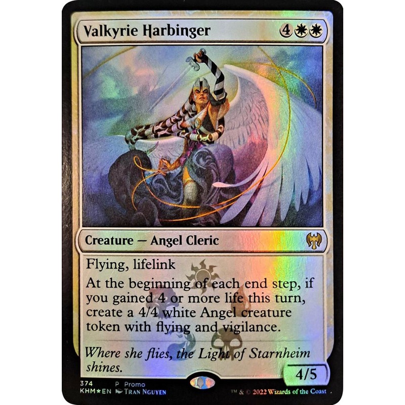 Flying, lifelinkAt the beginning of each end step, if you gain 4 or more life this turn, create a 4/4 white Angel creature token with flying and vigilance.Rarity:P#:374Card Type:Creature Angel ClericP / T:4 / 5Flavor:Where she flies, the Light of Starnheim