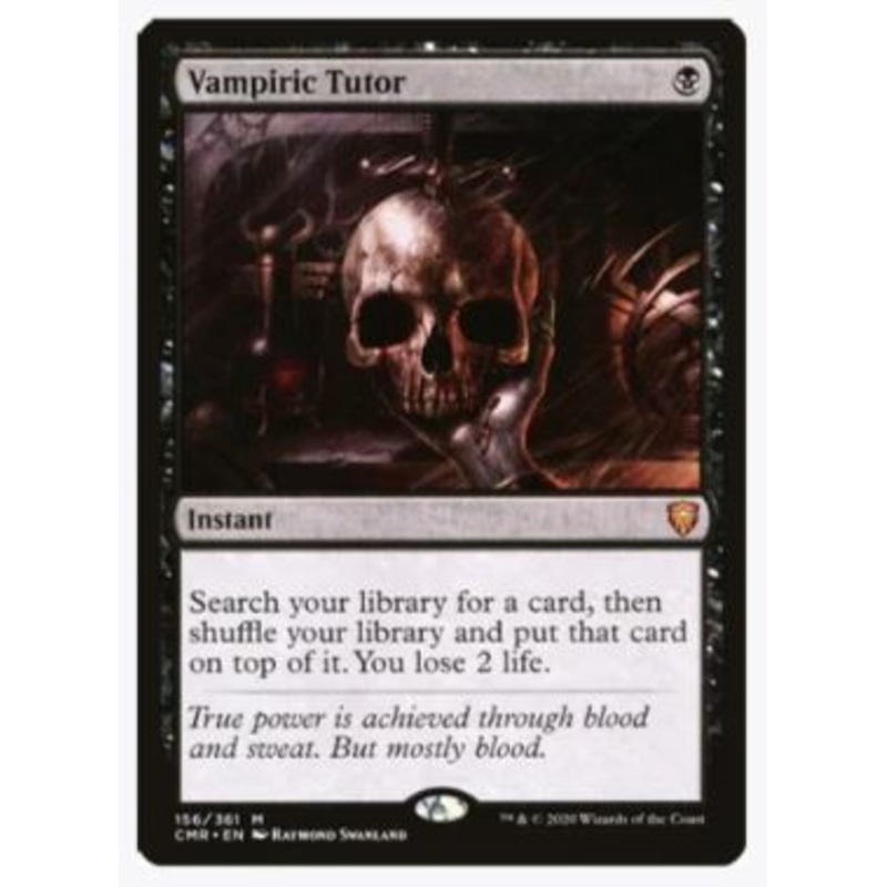 Search your library for a card, then shuffle your library and put that card on top of it. You lose 2 life.Rarity:M#:156Card Type:InstantFlavor:True power is achieved through blood and sweat. But mostly blood.Casting Cost: B