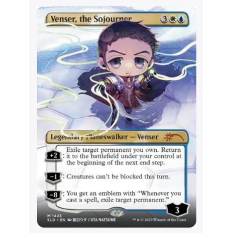 [+2]: Exile target permanent you own. Return it to the battlefield under your control at the beginning of the next end step.[-1]: Creatures are unblockable this turn.[-8]: You get an emblem with "Whenever you cast a spell, exile target permanent."Rarity:M#
