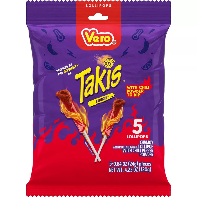 Indulge in the explosive flavor of Vero Takis Fuego Lollipops! With a crispy, spicy coating and a lollipop center, these unique treats offer a thrilling combination of heat and sweetness. Perfect for snacking on-the-go or sharing with friends, these lollip