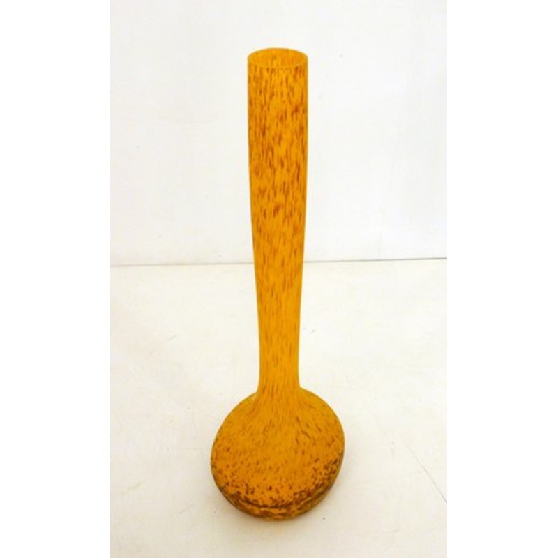 Very large soliflore vase, slightly oval calabash ball body then very high stretched tube neck (height 53 cm), so-called Berluze shape; in marmoreal frosted glass orange speckled brown, in the style of Delatte, Daum or Muller Frres.