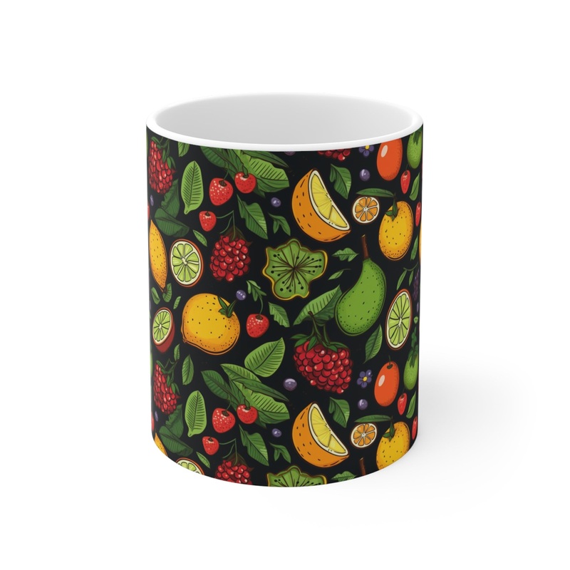 Keywords: fruit coffee mug, endless pattern mug, colorful fruit design, ceramic coffee cup, unique mug gift, kitchen decor, trendy drinkware, eco-friendly mug, fruity pattern, vibrant colors