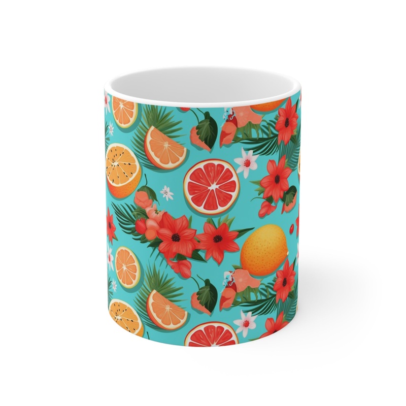 Keywords: fruit coffee mug, endless pattern mug, colorful fruit design, ceramic coffee cup, unique mug gift, kitchen decor, trendy drinkware, eco-friendly mug, fruity pattern, vibrant colors