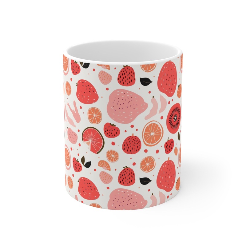 Make a statement in your kitchen or office with this trendy drinkware piece that reflects your vibrant personality. Order your Infinite Fruit-Themed Coffee Mug today and indulge in the joyful fusion of functionality and art!