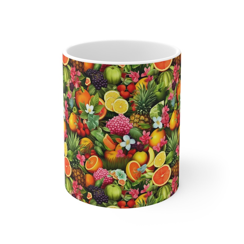 Make a statement in your kitchen or office with this trendy drinkware piece that reflects your vibrant personality. Order your Infinite Fruit-Themed Coffee Mug today and indulge in the joyful fusion of functionality and art!