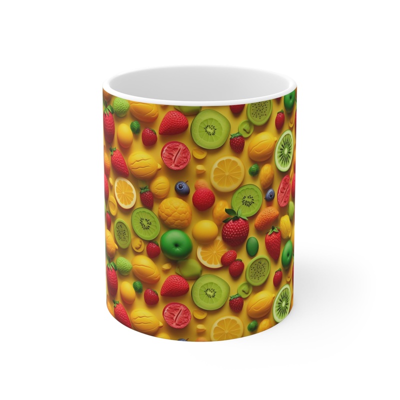 Make a statement in your kitchen or office with this trendy drinkware piece that reflects your vibrant personality. Order your Infinite Fruit-Themed Coffee Mug today and indulge in the joyful fusion of functionality and art!