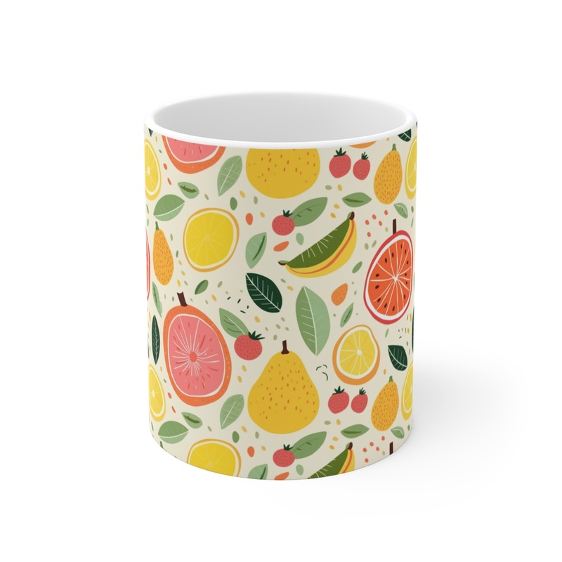 Keywords: fruit coffee mug, endless pattern mug, colorful fruit design, ceramic coffee cup, unique mug gift, kitchen decor, trendy drinkware, eco-friendly mug, fruity pattern, vibrant colors