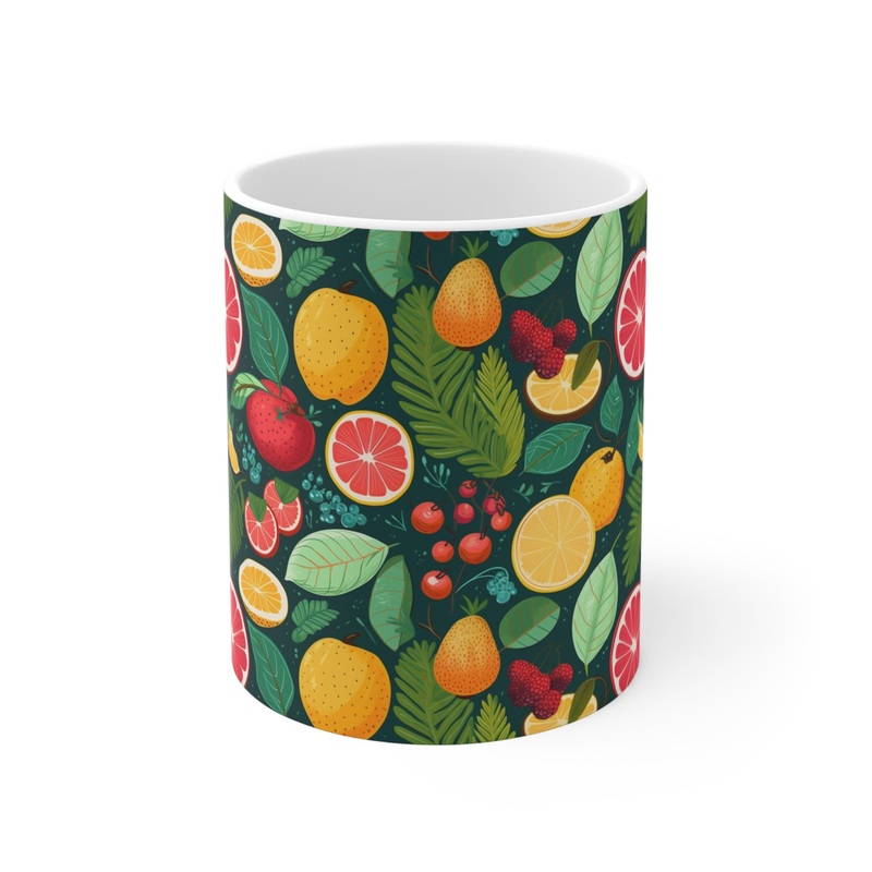 Make a statement in your kitchen or office with this trendy drinkware piece that reflects your vibrant personality. Order your Infinite Fruit-Themed Coffee Mug today and indulge in the joyful fusion of functionality and art!