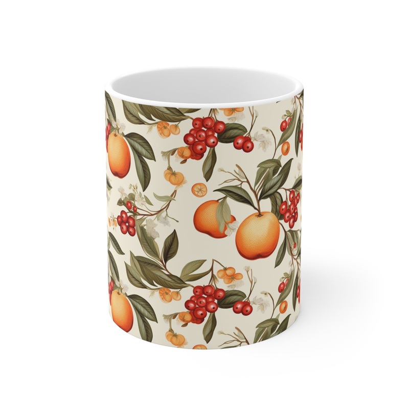 Make a statement in your kitchen or office with this trendy drinkware piece that reflects your vibrant personality. Order your Infinite Fruit-Themed Coffee Mug today and indulge in the joyful fusion of functionality and art!