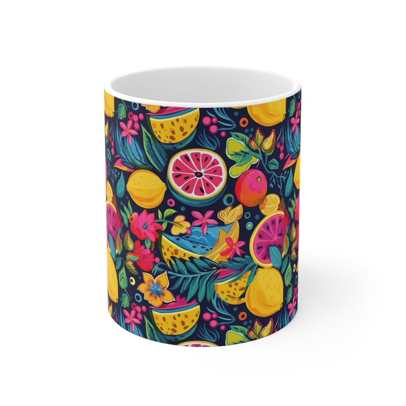 Make a statement in your kitchen or office with this trendy drinkware piece that reflects your vibrant personality. Order your Infinite Fruit-Themed Coffee Mug today and indulge in the joyful fusion of functionality and art!