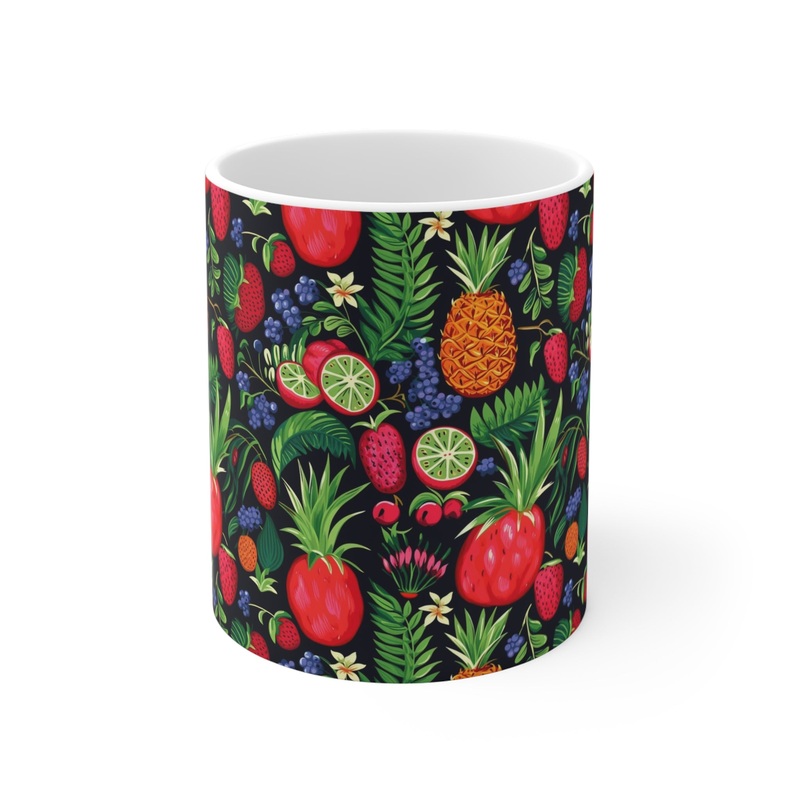 Make a statement in your kitchen or office with this trendy drinkware piece that reflects your vibrant personality. Order your Infinite Fruit-Themed Coffee Mug today and indulge in the joyful fusion of functionality and art!