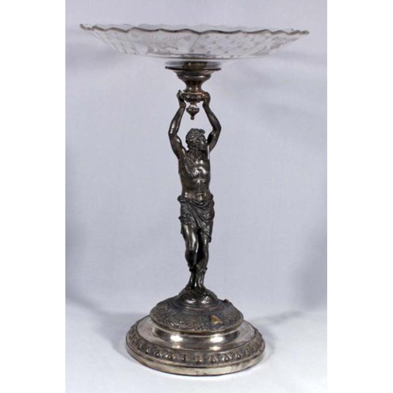 A beautiful silver plated zinc-aluminium and glass fruit bowl from the Victorian era. This will be suitable for any period living rooms.