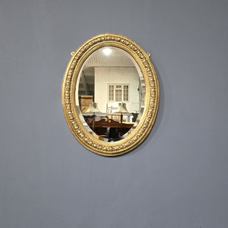 A lovely Victorian bevelled glass oval gilt wall mirror, original back boards with 1886 Islington Gazette paper under, in lovely condition throughout, can be hung portrait or landscape.28" x 22.5" Design Period Before 1890 Year 1887 Production Period Unkno