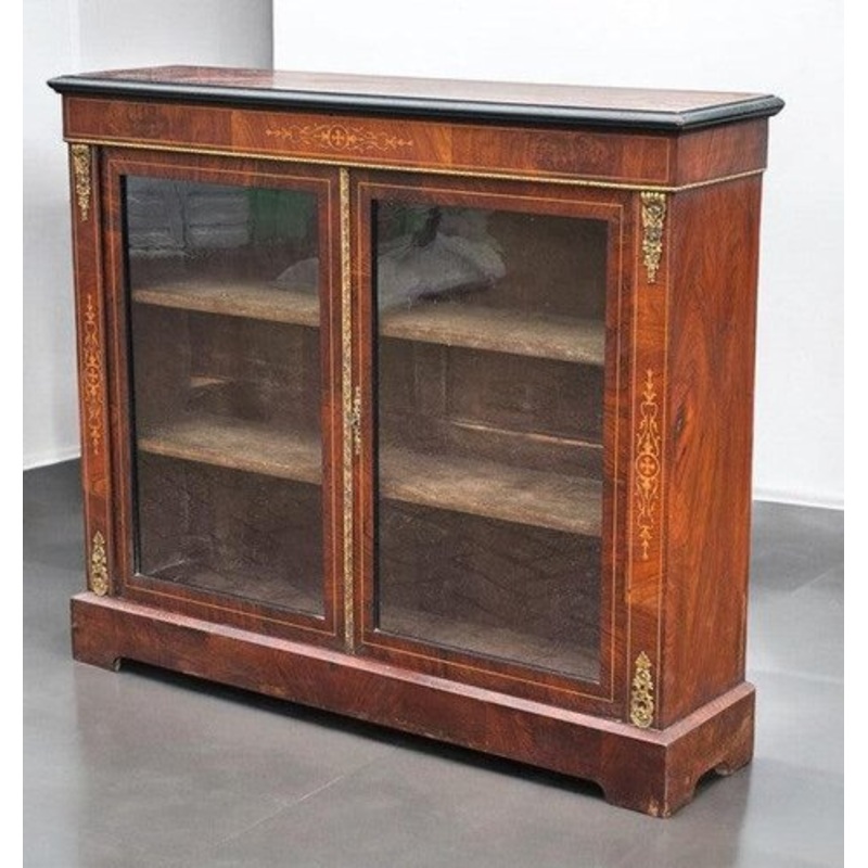 Victorian Pier Bookcase, Display Cabinet, Credenza with Brass Decoration & Inlay 106 cms high 123 cms wide 30 cms depth Strong & very useable, is a used item so will have signs of use and wear, the odd knock see pics