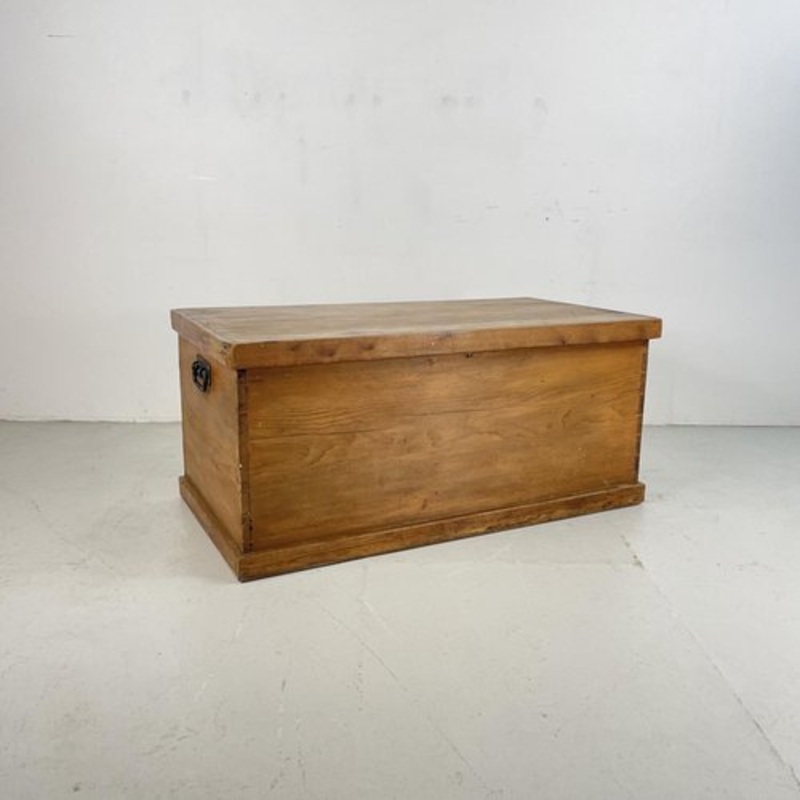 Victorian pine trunk In good vintage condition. Some signs of wear commensurate with age. Approximate dimensions: Width: 110cm Depth: 58cm Height: 50cm