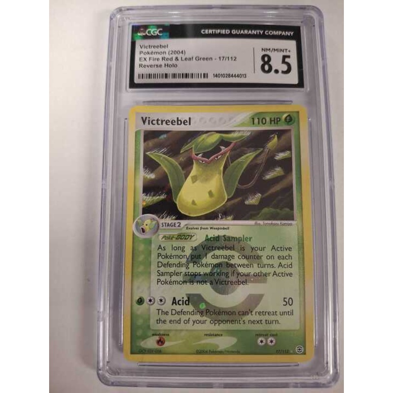 Product DetailsCard Number / Rarity:17/112 / Holo RareCard Type / HP / Stage:Grass / 110 / Stage 2Card Text:Poke-BODYAcid SamplerAs long as Victreebel is your Active Pokemon, put 1 damage counter on each Defending Pokemon between turns. Acid Sampler stops