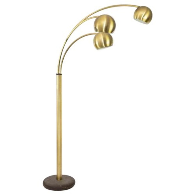 Vintage Brass Floor Lamp Attributed to Goffredo Reggiani, 3 arms with tilting lampshades. Vintage lamp from 1970s with marble base. Maximum extension lenght 175x75 cm; minimum extension lenght 111x35 cm. Good conditions except for some scratches on the lam