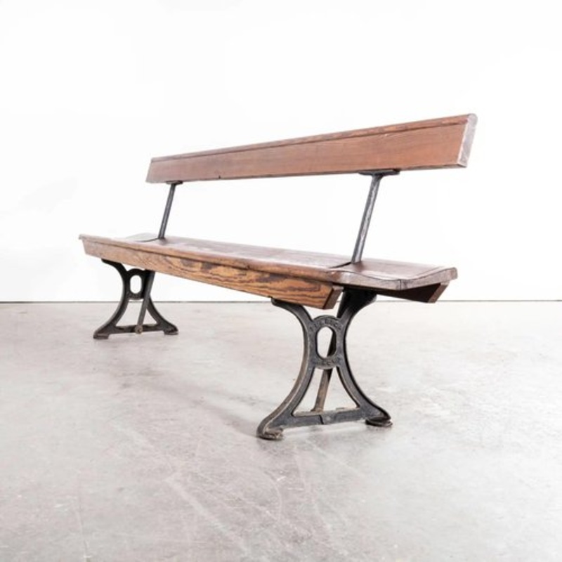 : 1940's Original British Station Benches - Model 2340. Sourced from a disused station in the midlands we have a number of these very original benches available. The benches feature heavy cast metal bases with cast back support rails. The back rest easily