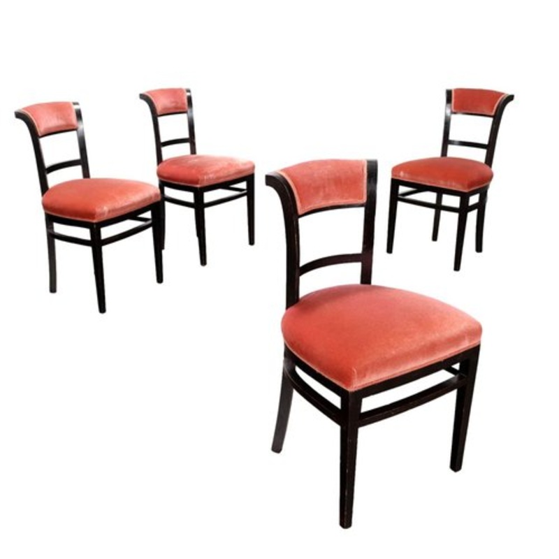 Group of 4 chairs, ebony stained wood, foam padding, velvet upholstery (not original from the period). Design Period 1920 to 1949 Production Period Unknown Country of Manufacture Italy Identifying Marks This piece is attributed to the above-mentioned desig