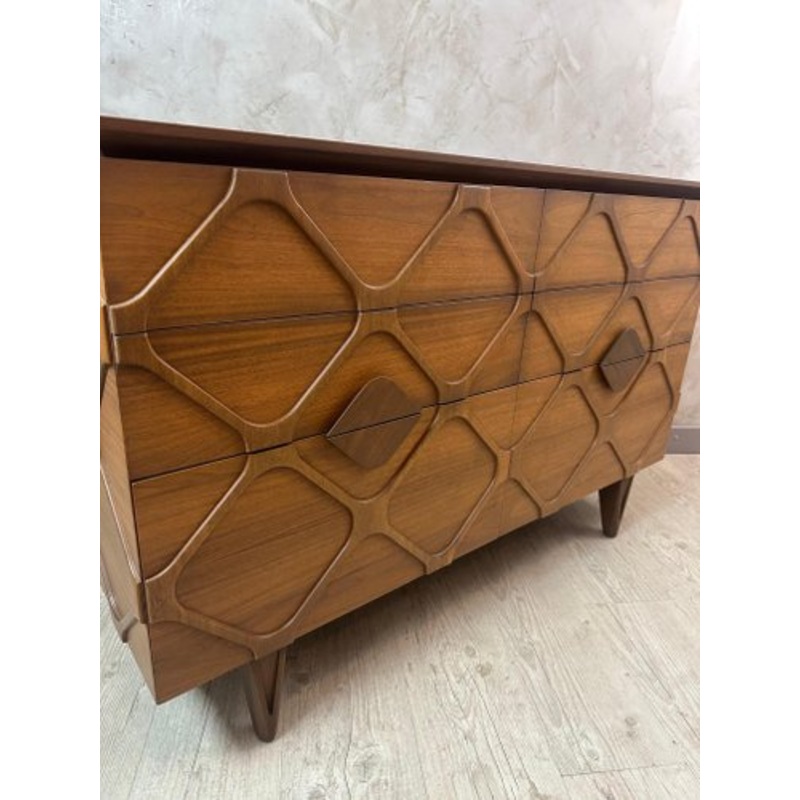Pretty contemporary composite chest of drawers, made up of 6 drawers with shock absorbers.Very functional and original with its facade with geometric patterns in vintage Italian style.A few small scratches on the tray but in good general condition. Design