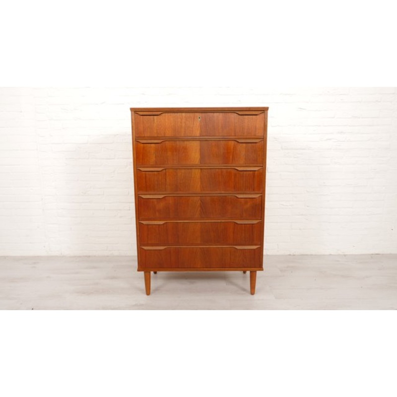 This vintage chest of drawers comes from Denmark and offers plenty of storage space. The cabinet has 6 drawers that feature beautiful wooden handles and a nice pattern in the wood. A fine and practical cabinet!