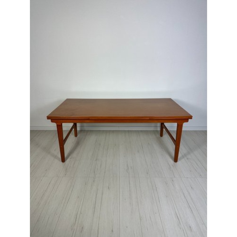Minimalistic XL vintage dining table original from the 1960s. Functional design with two extendable plates. They can be used as single or double extendables. Teak wood. Well-maintained condition with an fewage-related signs of use.