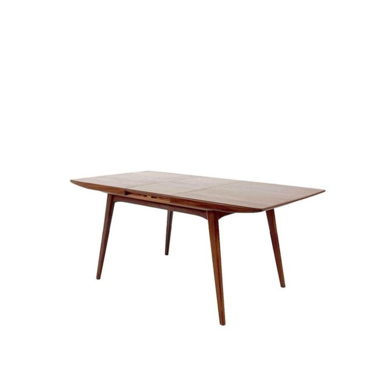 This teak dining table has an elegant and timeless design. The table top is extendable, making it easy to adjust the table to two sizes. Depending on the size