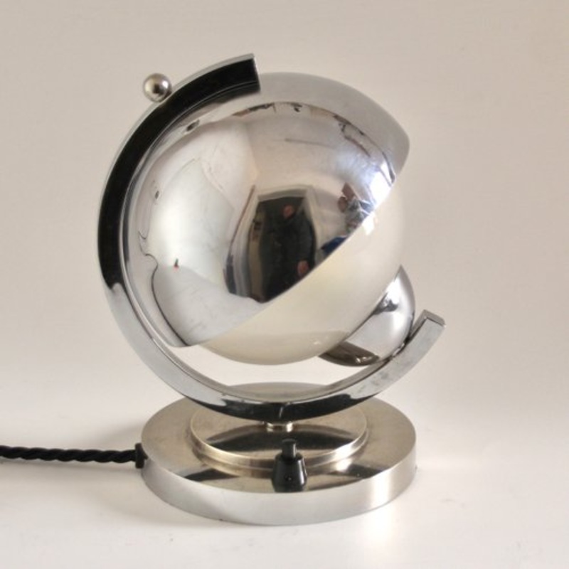 Very rare, unusual Art Deco table lamp consisting of solid chrome-plated brass and an etched glass shade around the bulb. It is attributed to the well-known Art Deco designer Jacques Adnet. Creator Jacques Adnet Design Period 1920 to 1949 Year Production P