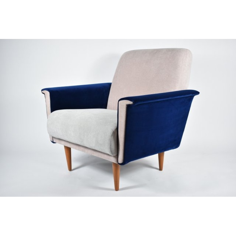 Its charm is undoubtedly added by wide wooden armrests and very stylish, not too massive legs.