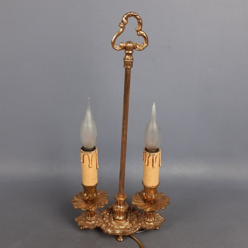 Beautiful vintage table candelabra lamp, made of golden brass, with fantastic floral decorations and reliefs, excellent Italian manufacturing, very scenic and rare.