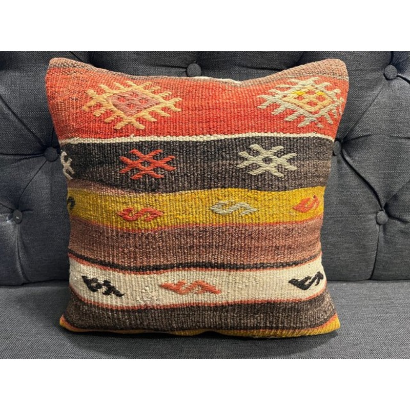 Handmade Ethnic Sofa Pillow;Fashioned (cutted and stitched), from a 30-40 years old vintage Kilim Carpet. Each of our cushion covers is cut from an old carpet, flat surface with no pile... This luxury cushion comes in a variety of patterns to suit your dec