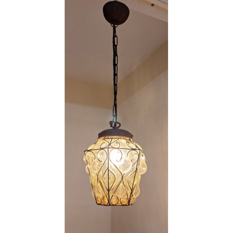 Vintage Hanging Lamp with an Embedded Glass Shade, 1970s for sale at Pamono