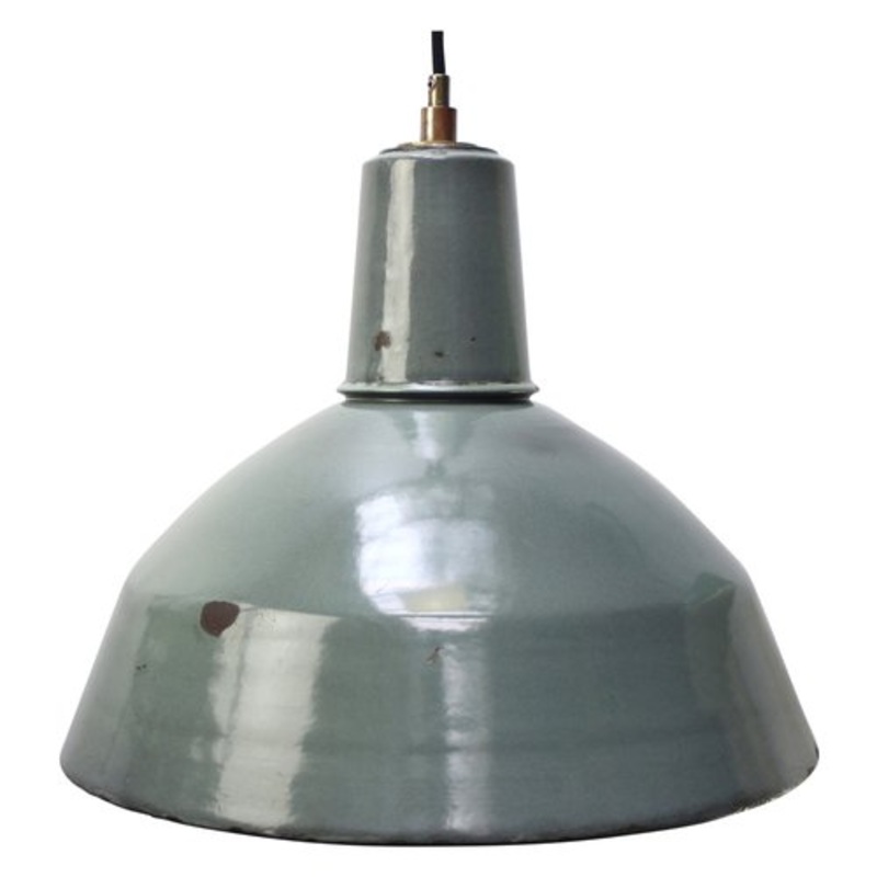 Factory hanging lightpetrol enamel, white interiorE27 / E26 Design Period 1950 to 1959 Year Production Period Unknown Country of Manufacture France Style Vintage, Industrial Detailed Condition Very Good This vintage/antique item has no defects, but it may