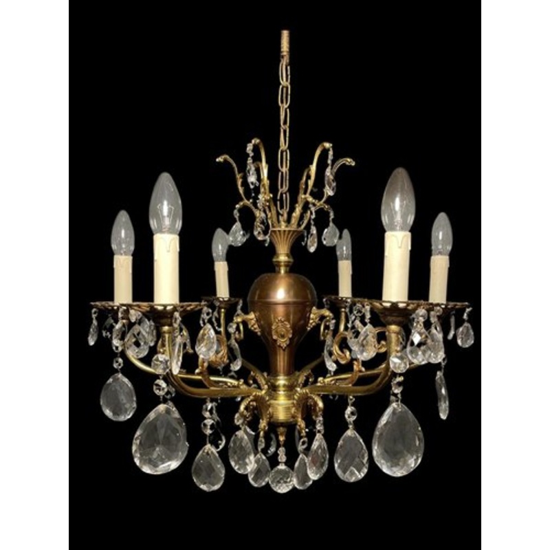 Discover this beautiful Italian chandelier now on display at Vintage Dublin. with six graceful branches and a brass and copper urn-shaped centerpiece adorned with crystal drops, this piece radiates timeless charm. Fully rewired and in very good, vintage co