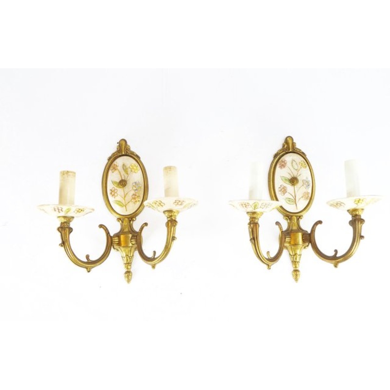 Vintage Italian Wall Lamps with Brass and Hand Painted Porcelain Sconces, Set of 2 for sale at Pamono