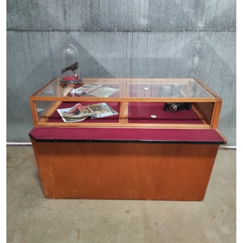 Looking for a stunning statement piece? This vintage jewelry counter is the perfect blend of elegance and functionality. with plush purple lining, pull-out display trays, and mirrored cabinet doors, its an eye-catching addition to any space.