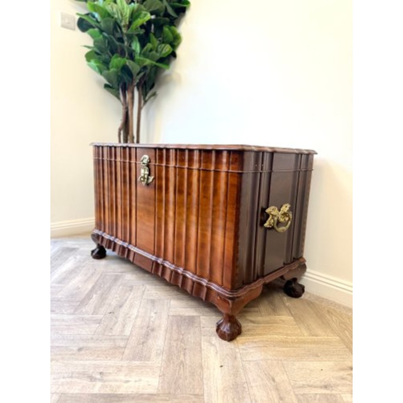 Vintage solid dark wood blanket box with beautiful unique details including dovetail joins.