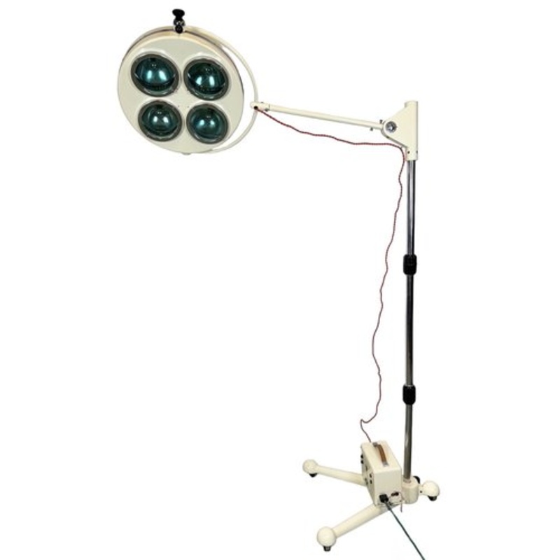 -Vintage industrial field operating lamp made byFAMED-1 in Poland during the 1960s.-Adjustable standing operation light for mobile hospital.-On wheels.-Medical / army / industrial-from the state storage in preparation for calamities and disasters.-The base