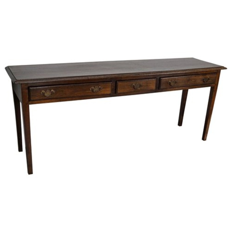This elegant table was made in England. The table was made in solid oak with a beautiful grain pattern. It has a warm color with deep gloss. It was originally a dining table and later in it’s life converted into this side table.