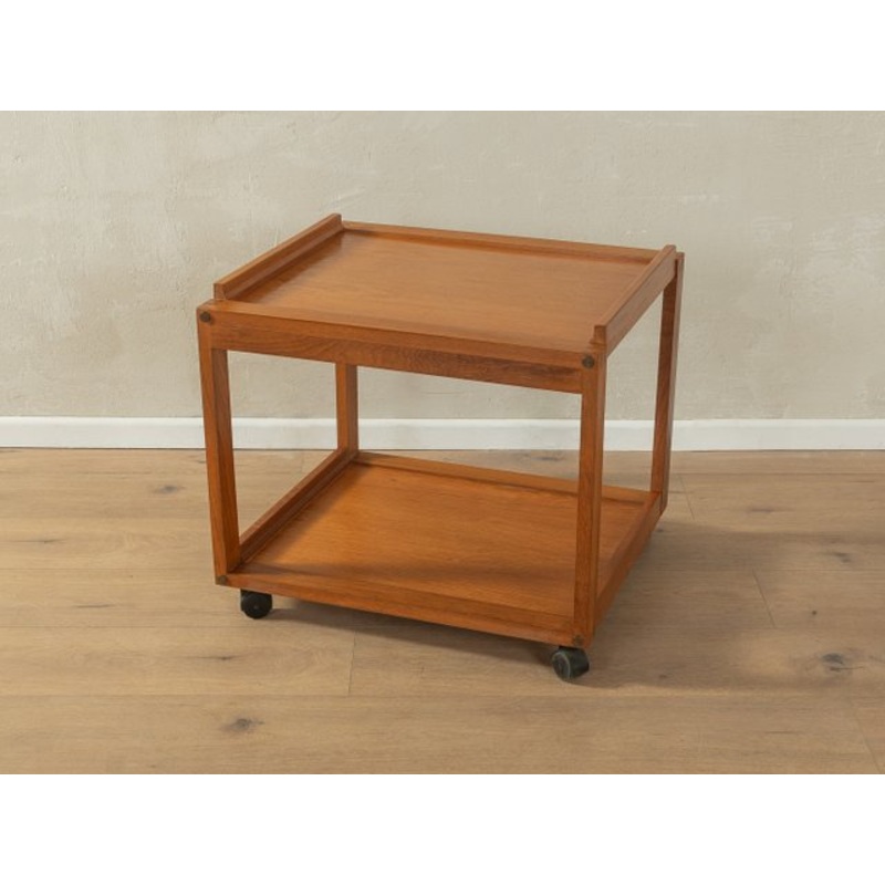 Classic serving trolley from the 1960s. Solid teak frame and floors in teak veneer with plastic wheels.Quality features:very good workmanshiphigh quality materialsMade in Denmark Design Period 1960 to 1969 Production Period 1960 to 1969 Country of Manufact