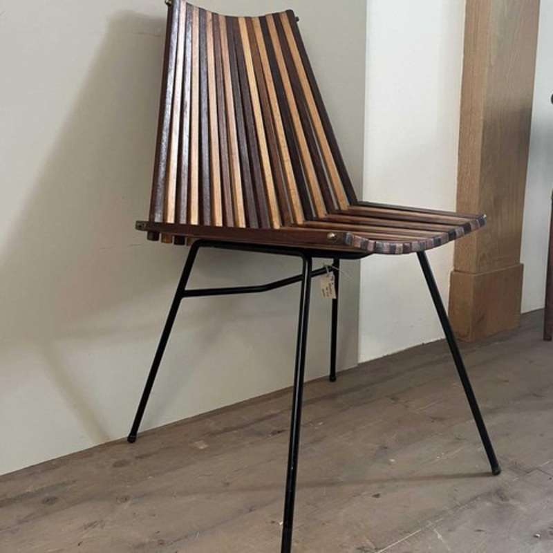 Slat chair designed by Dirk van Sliedregt for Roh Nordwolde in the 1960s. 47 b x 44 seat height x 80 back height x 60 d