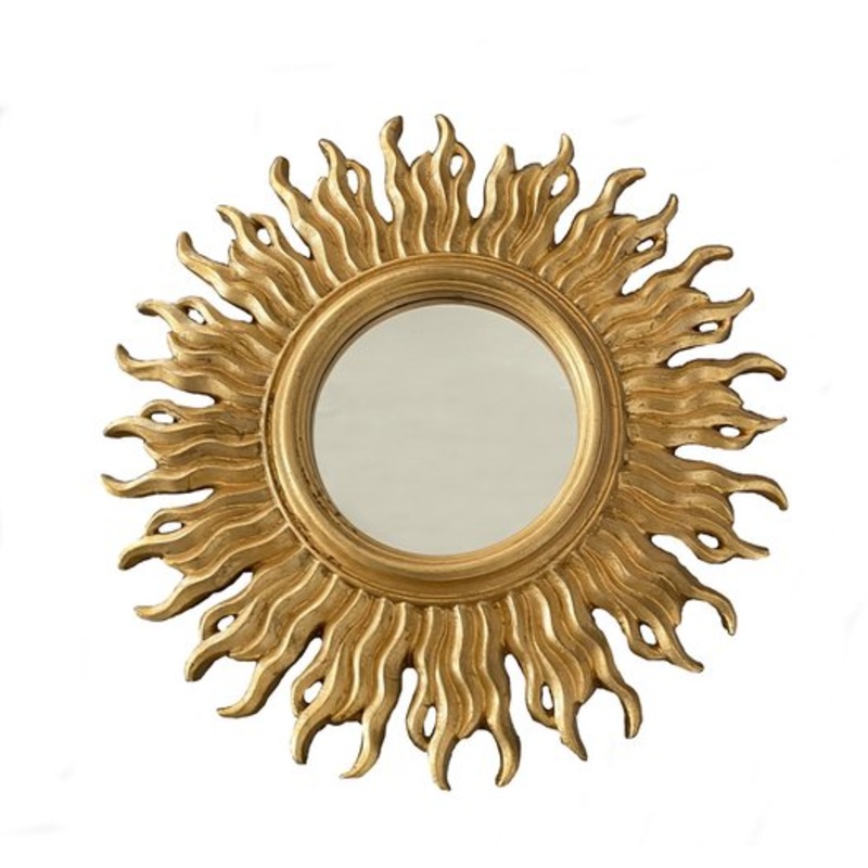 Gilt carved wood, made in Italy or Spain. Circa 1980. Small mirror in center. Design Period 1980 to 1989 Production Period 1980 to 1989 Country of Manufacture Italy Style Vintage Detailed Condition Very Good This vintage/antique item has no defects, but it