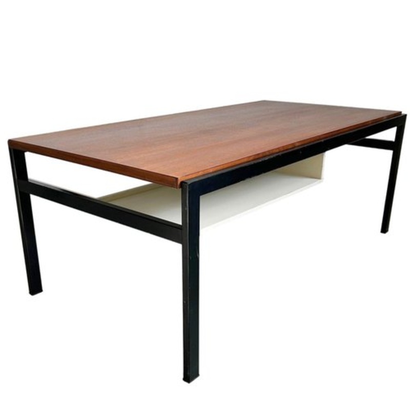 Vintage mid-century coffee table Japanese Series model TU04 by Cees Braakman for Pastoe from the 1960s. This coffee table has a reversible table top in teak and white. The table top is in good condition. The metal frame has visible signs of wear (see photos). Width: 120 cm Height: 46.5 cm Depth: 63 cm