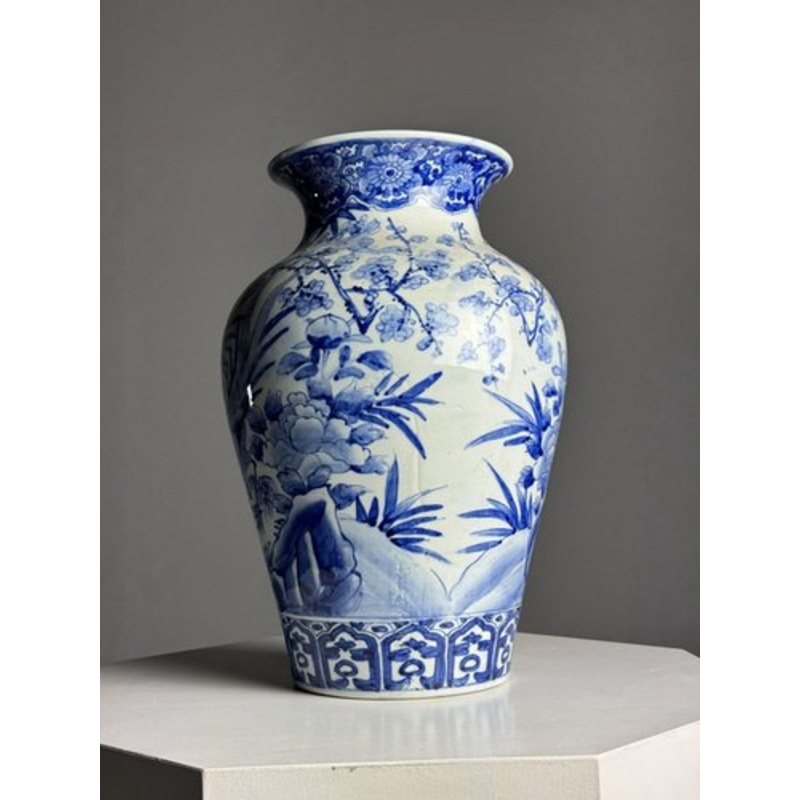 Beautiful blue and white colored vase. Richly decorated with flowers, plants and trees. 20th century. Very good condition. Dimensions: 39h x 24.5 Production Period Before 2010 Style Vintage, Empire Detailed Condition Good This vintage/antique item may have