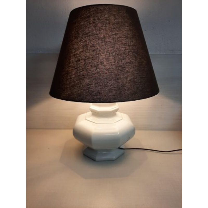 Base in white ceramic, lampshade in plastic material covered with fabric, new electric cable and switch, the wall plug is the original one.