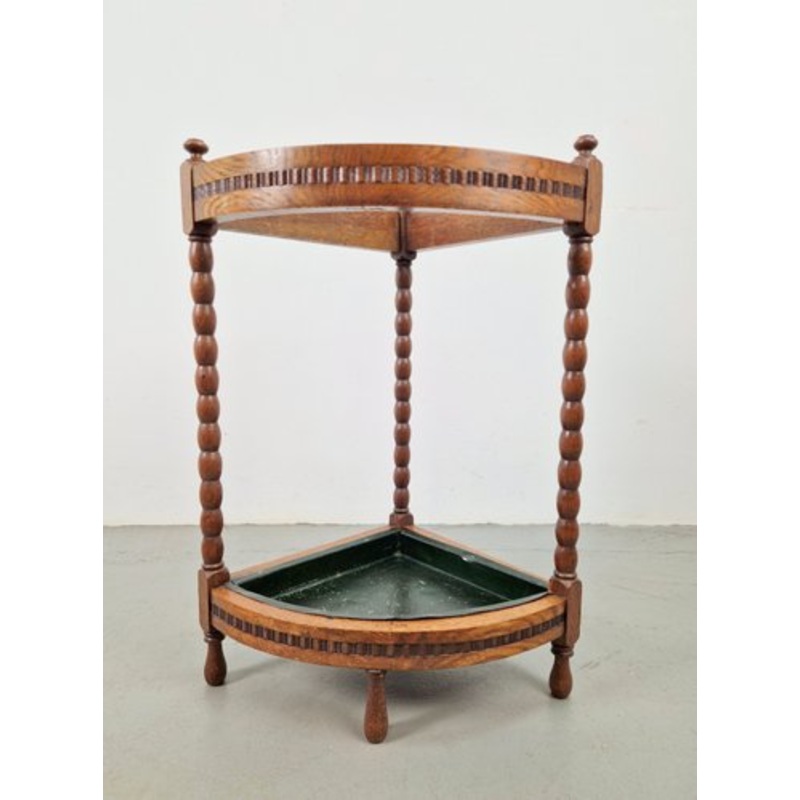 Vintage Bobbin wooden umbrella stand with zinc bowl umbrella holder '20This corner umbrella stand is nice for a hall and ideal for umbrellas and walking sticks!The umbrella holder is 35 cm wide, 35 cm deep and 65 cm high Design Period 1920 to 1949 Producti