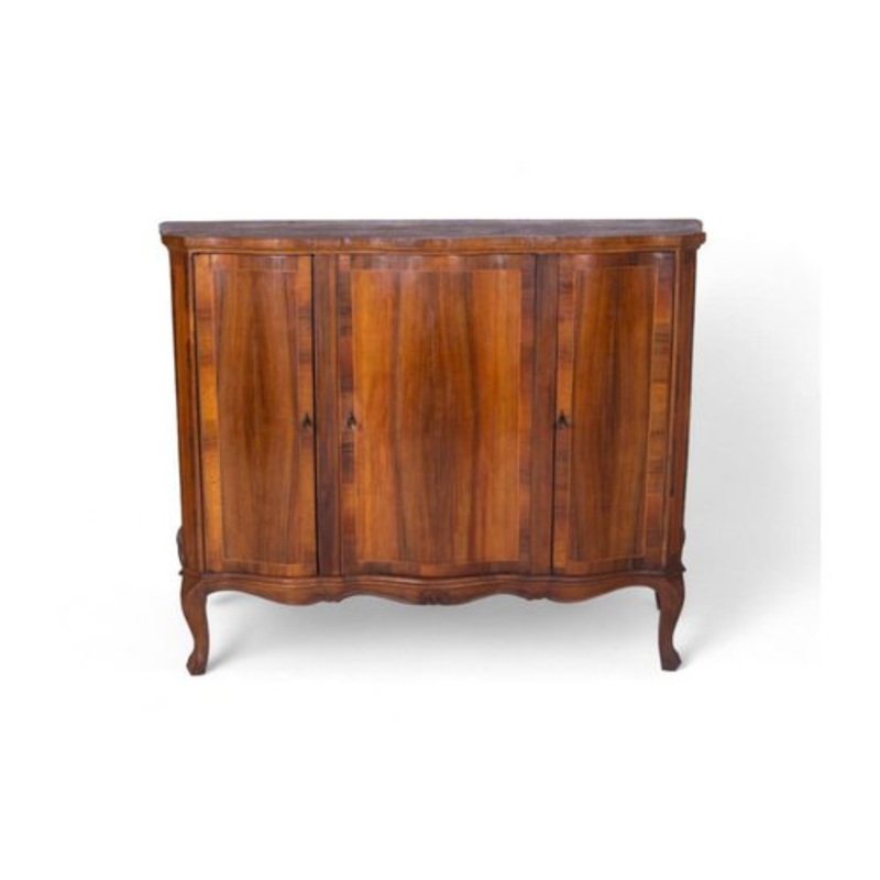 Add a touch of class to your space with this charming vintage sideboard. Carefully crafted, this sideboard features an elegant 19th-century design, perfect for adding a touch of elegance to your decor. Its soft lines and curved profile give it timeless charm, while the arched legs add a note of lightness. The sideboard has four lockable doors, providing ample interior space with shelves to best organize dishes, table linens, and other items. The smooth, spacious top surface is ideal for displaying decorations or photographs. A unique piece that combines style and functionality, destined to become the focal point of any room.